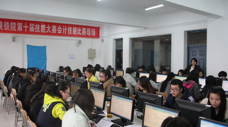 “会计技能”项目比赛现场 11月14日,陕铁院第十届技能大赛“会计技能”比赛在临渭校区实训楼机房拉开帷幕,学院会计与审计专业的24组选手共96名学生参加了比赛。 比赛以团体赛方式进行,时长180分钟,4人一小组,分别设出纳、成本会计、总账会计和会计主管四个岗位角色,竞赛团队根据赛题所提供的制造企业经济业务,按照会计岗位职责分工的基本要求,各选手利用专业软件完成自己的账务处理,同时小组成员协调沟通,共同完成团队任务,竞赛项目综合考核了选手的个人技能水平和团队协作能力。(陈明明)